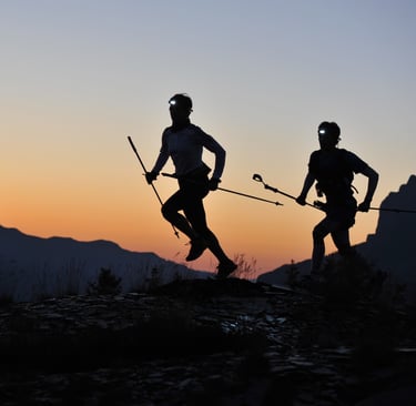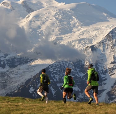 Nos accompagnateurs — traileurs passionnés et diplômés — vous guident sur les plus beaux itinéraires du massif du Mont-Blanc, entre crêtes, forêts et alpages, tout en partageant leurs conseils sur la technique, la nutrition et la préparation mentale.